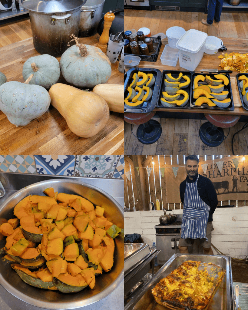 That’s the essence of our latest project, Breaking Bread: bringing people together to share food. From roasted squash to slow-cooked beef, from freshly picked salad to homemade bread, our first Breaking Bread event celebrated community and local food. People from across our network came together to prepare, serve, and eat. The barn was adorned with bunting and fairy lights, hay bales were stacked for seating, and tables were collected from across the farm to create a perfect setting for a feast. Everyone gathered together and the hum of chatter and laughter filled the barn for a glorious lunchtime meal brought to life by Sima, from the Kitchen Table, and the Ambios team.