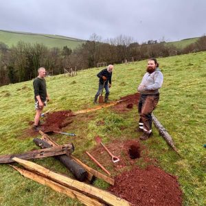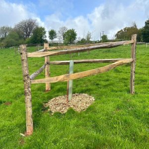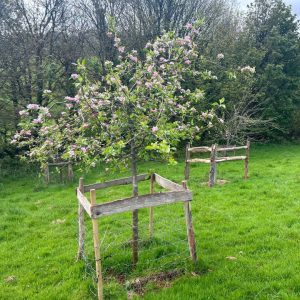 After an initial busy few years of establishment, the orchard is now in need of a new vision and focused care. Through our Sharpham Wild About Trees Project – funded by the Plymouth & South Devon Community Forest, our tree planting ranger and a weekly volunteer group have planted 16 trees (cherry, plum. apple and pear) to either replace failed trees or fill in new locations in the orchard. Along with this, new chestnut post and rail guards have gone up to protect the newly planted trees, a big thank you to all their hard work!